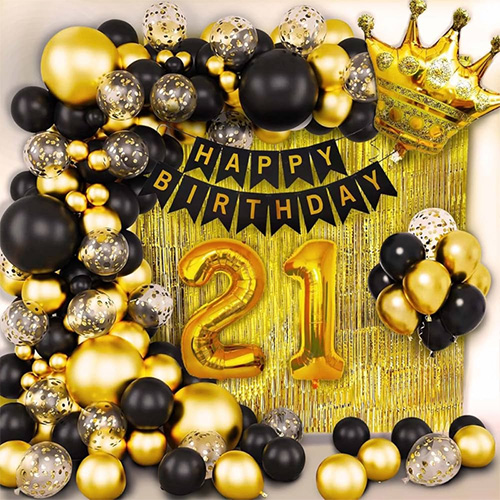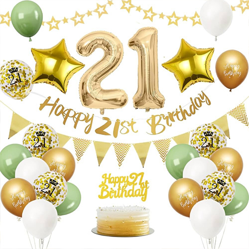 Set di palloncini 21: questo set di palloncini 21 è composto da palloncini in lattice, palloncini in foil, bandiere di compleanno e altri accessori. È facile da montare e può rendere la tua festa del 21° compleanno più cerimoniale. Un'ambientazione così straordinaria e di così alta qualità ti aiuterà a rallegrare la notte del tuo 21° compleanno e a rendere questo un momento prezioso che tua figlia, te stesso e tutta la famiglia non dimenticheranno mai.