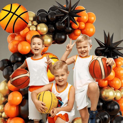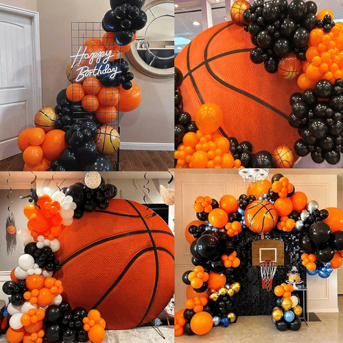 Il kit ghirlanda di palloncini da basket simboleggia lo spirito sportivo. Viene fornito con diversi palloncini in lattice e diversi palloncini in alluminio. Come per il tema del basket, i colori di questo set sono principalmente arancione e nero, e sono disponibili diversi stratipalloncini in lattice oro metallizzatovengono anche aggiunti. Lo stile totale è molto attraente, può migliorare immediatamente l'atmosfera della tua festa.