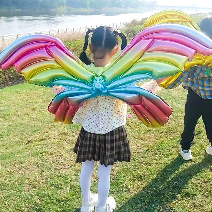 Creando un effetto visivo dinamico, le ali sono leggermente inclinate attraverso un design speciale e una regolazione del centro di gravità, creando l'illusione di una farfalla che fluttua bassa. Quando sono gonfiati, sembrano slittare lateralmente. Alcuni disegni a palloncini presentano anche glitter e paillettes lungo i bordi delle ali. Sotto l'illuminazione ambientale, i palloncini appaiono ancora più dinamici, aggiungendo un tocco vibrante a qualsiasi spazio.