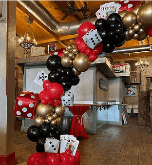 Principalmente nella classica combinazione di colori rosso, nero e oro, che è la combinazione di colori più iconica nella scena dei casinò e lo stile con il volume di acquisto più elevato. Con il rosso puro brillante e il nero profondo opaco come base e con palloncini in lattice color oro metallizzato come abbellimenti a strati, ripristina l'atmosfera lussuosa e misteriosa di un casinò, soddisfacendo le esigenze di decorazione della stragrande maggioranza dei clienti e avendo una versatilità estremamente forte.