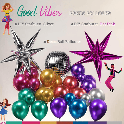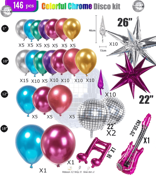 Le varie dimensioni e colori dei palloncini hanno creato un effetto di stratificazione molto complesso per questo kit, che può attirare molta attenzione per il tuo evento. È molto adatto per feste in discoteca, eventi musicali, feste di compleanno e così via. Inoltre, poiché la cultura musicale K-pop sta diventando sempre più popolare nel mondo, puoi creare ilKit arco per palloncini da discoteca K-popaggiungendo diverse decorazioni in stile K-pop, come fondali o palloncini foil. Oppure aggiungendo le decorazioni di compleanno per realizzare un kit di decorazioni per palloncini da discoteca.