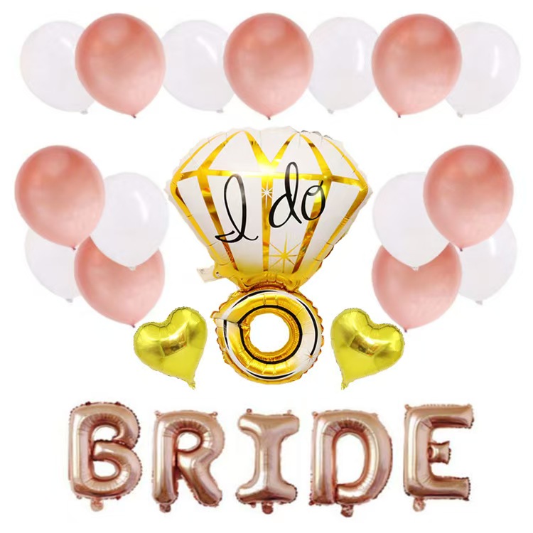 Lo stile dell'abito è composto principalmente da palloncini foil con anello di fidanzamento con diamante, abbinati a palloncini foil a stella e palloncini rotondi a tema, e l'abbinamento generale è semplice e suggestivo. Allo stesso tempo, supporta la personalizzazione personalizzata e può regolare il tipo e la quantità di palloncini in base alle esigenze, ad esempio aggiungendo palloncini foil con lettere come I DO e MARRY ME per rafforzare ulteriormente l'atmosfera di confessione e proposta.