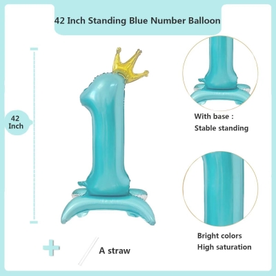 ILPalloncini con numeri in foil in piedile decorazioni hanno basi gonfiabili speciali. Stanno fermamente. Non è necessario alcun supporto aggiuntivo. Il posizionamento è flessibile e gratuito. Sono disponibili in molti colori. I colori includono blu, rosa e argento. Gli stili dei numeri sono completi. Coprono le cifre da 0 a 9. Si adattano bene a temi diversi. I temi includono l'età dei compleanni e le celebrazioni dell'anniversario.