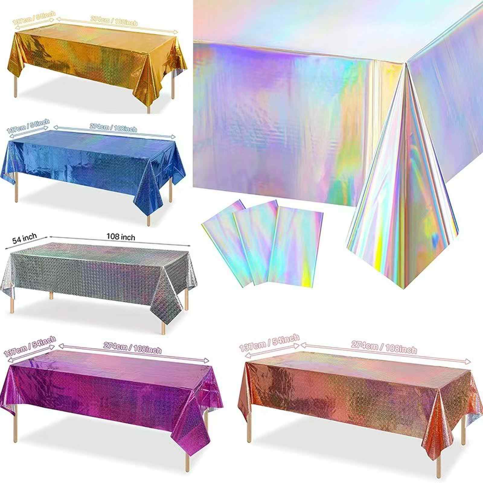 colore arcobaleno, tovaglia in alluminio con animali dei cartoni animati e motivi di torte, adatta per feste di compleanno per bambini; oro, argento, colore laser con stelle e motivi a lettere, adatti per feste di compleanno per adulti, celebrazioni di anniversario, feste di fidanzate, ecc., possono essere organizzati in tavoli da pranzo di famiglia, tavoli per feste in hotel, tavoli da picnic all'aperto e altre scene.