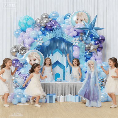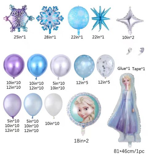 I palloncini in foil sono la parte principale del set arco per palloncini a tema Frozen. Includono principalmente palloncini foil con ritratto della testa della principessa, palloncini foil con pupazzo di neve. È inoltre possibile aggiungere il palloncino in foil con numeri e il palloncino in foil con lettere per creare un'atmosfera di festa più elevata, come se si desiderassero decorazioni in stile festa di compleanno.