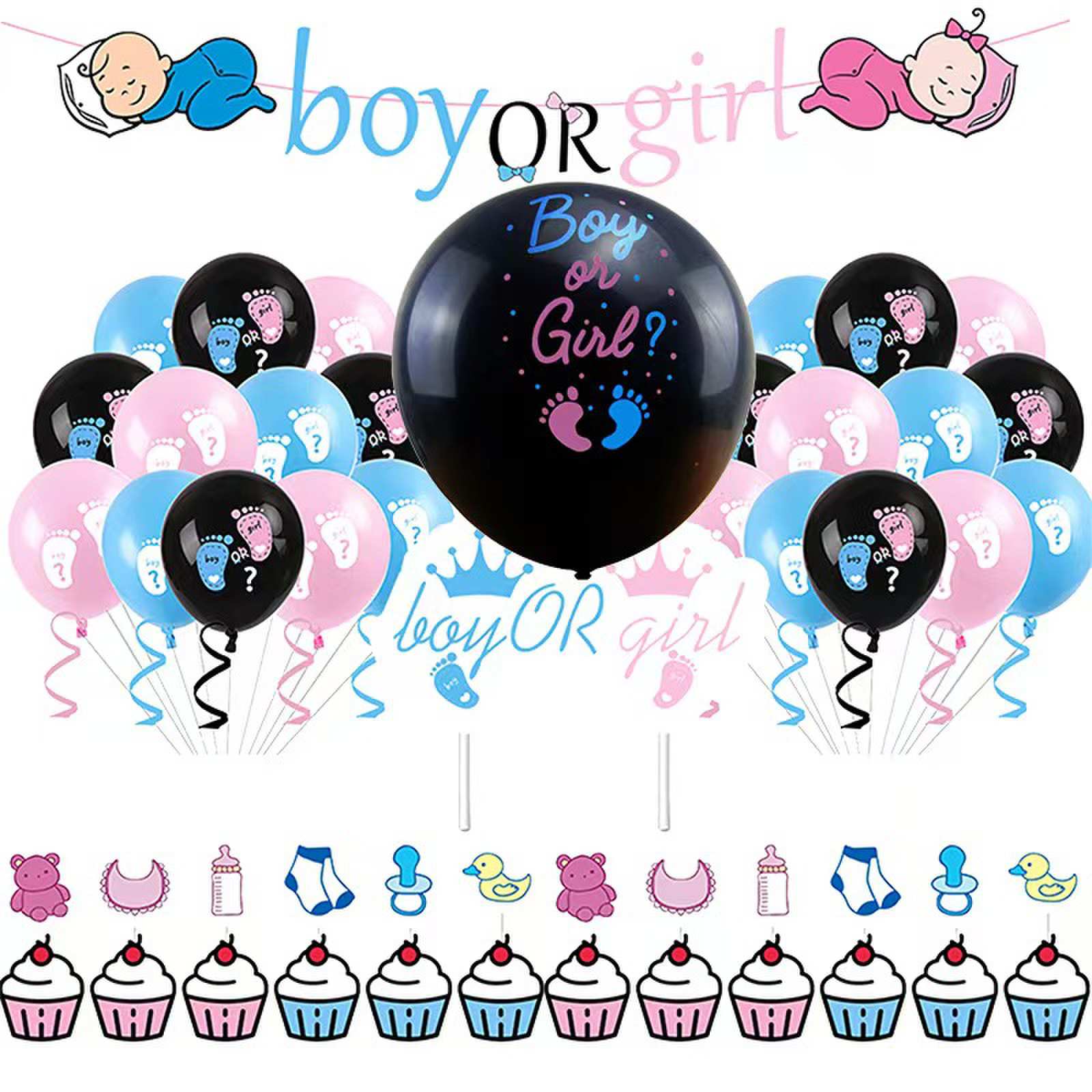Il palloncino in lattice Gender Reveals è realizzato in lattice naturale come materiale centrale, con tocco morbido, forma rotonda e piena dopo il gonfiaggio e colori naturali e delicati. Il modello classico utilizza coriandoli rosa e blu come riempimento del palloncino e utilizza la stampa di palloncini neri opachi da 36 pollici. Lo strato interno è composto da coriandoli blu che rappresentano il tesoro maschile e coriandoli rosa che rappresentano il tesoro femminile. Solo quando il palloncino viene forato, calpestato o rilasciato, la decorazione interna apparirà immediatamente, come aprire una scatola cieca piena di sorprese.