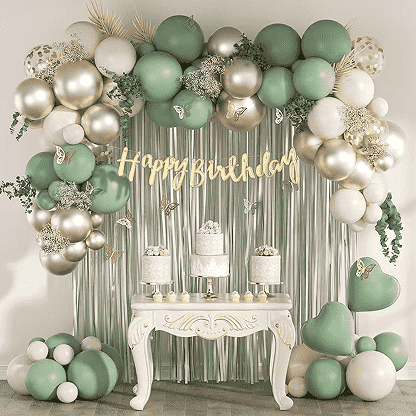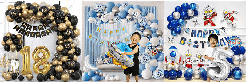Lo stile base è un palloncino in lattice Happy Birthday dello stesso colore o complementare, conPalloncini foil con lettera di buon compleannoOpalloncini in foil con numeri. Gli stili classici hanno palloncino in gel in polvere amaretto palloncino foil rosa Happy Birthday, palloncino in lattice nero palloncino foil con numero oro. I palloncini in lattice possono essere infilati in una catena di palloncini e appesi al muro o al soffitto, con palloncini in alluminio come centro visivo e una piccola quantità di nastri decorativi per creare rapidamente un'atmosfera di festa semplice e strutturata.
