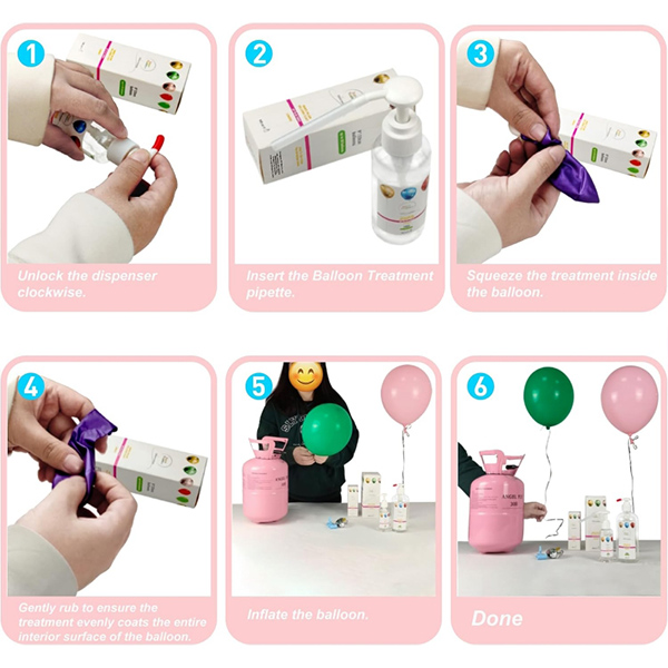Questa protezione per palloncini di elio realizzato in Cina è disponibile in due dimensioni: 100 ml e 500 ml. Include un distributore di pompe per una facile applicazione. Una bottiglia da 100 ml di protezione per palloncini di elio può riempire palloncini in lattice da 65-70 da 10 pollici o 12 pollici, estendendo il loro tempo di volo. Questo fluido per protezione per palloncini di elio è progettato per migliorare il tempo galleggiante dei palloncini in lattice, garantendo che la tua decorazione dura più a lungo e mantiene il suo fascino visivo durante l'evento. Le nostre soluzioni galleggianti ultra-alte offrono prestazioni galleggianti senza pari, consentendo ai palloncini di lattice di galleggiare per giorni. Questo estensore elio garantisce che la decorazione del tuo partito continuerà ad essere utilizzata dall'inizio alla fine, riducendo la necessità di una frequente sostituzione.