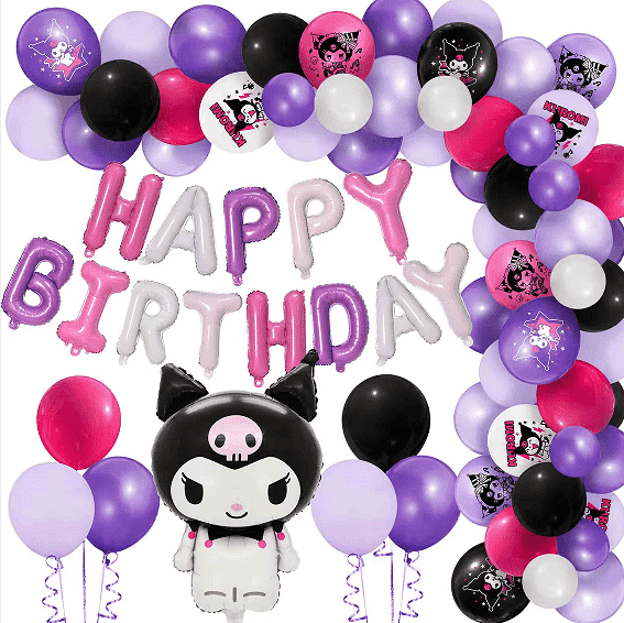 1. Palloon party kuromi personalizzato: fornire personalizzazione del palloncino per foglio (modello e forma), stampa a palloncino in lattice e design di stile di palloncini e ghirlande.