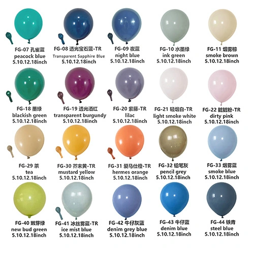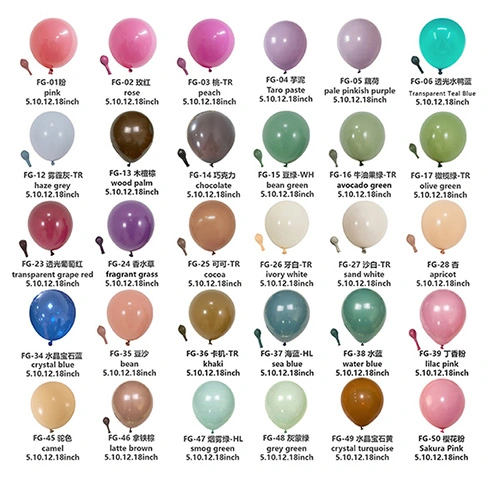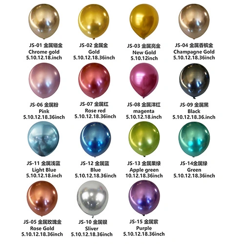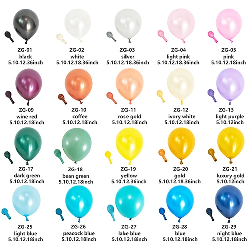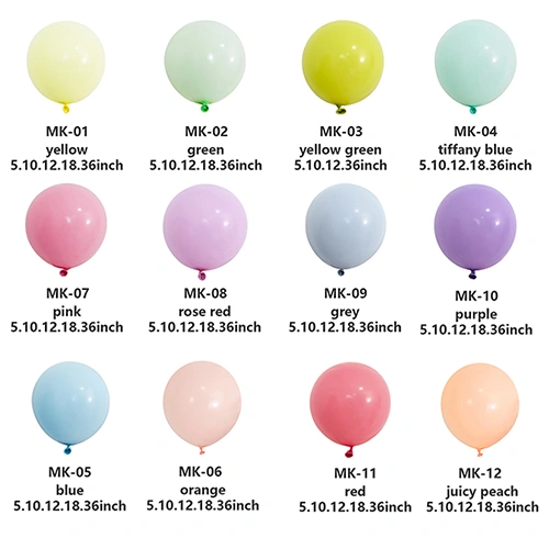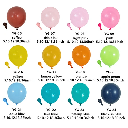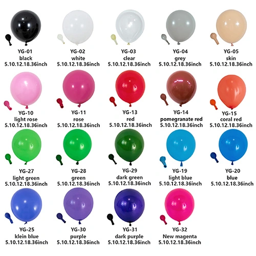 I nostri palloncini in lattice sono solitamente prodotti in 5 pollici, 10 pollici, 12 pollici, 18 pollici e 36 pollici. Se hai esigenze particolari e hai bisogno di personalizzare i palloncini, possiamo anche organizzare la produzione in altre dimensioni.