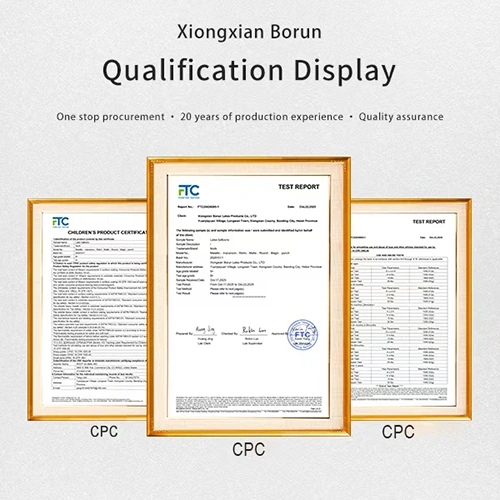 ASTM F963 (standard statunitense sulla sicurezza dei giocattoli):Garantisce che il prodotto soddisfi i requisiti di non tossicità del mercato statunitense e sia adatto ai bambini e all'uso interno. Questa certificazione è obbligatoria per Amazon e il mercato statunitense. Se acquisti palloncini da noi all'ingrosso, ti concederemo l'autorizzazione all'utilizzo della certificazione.