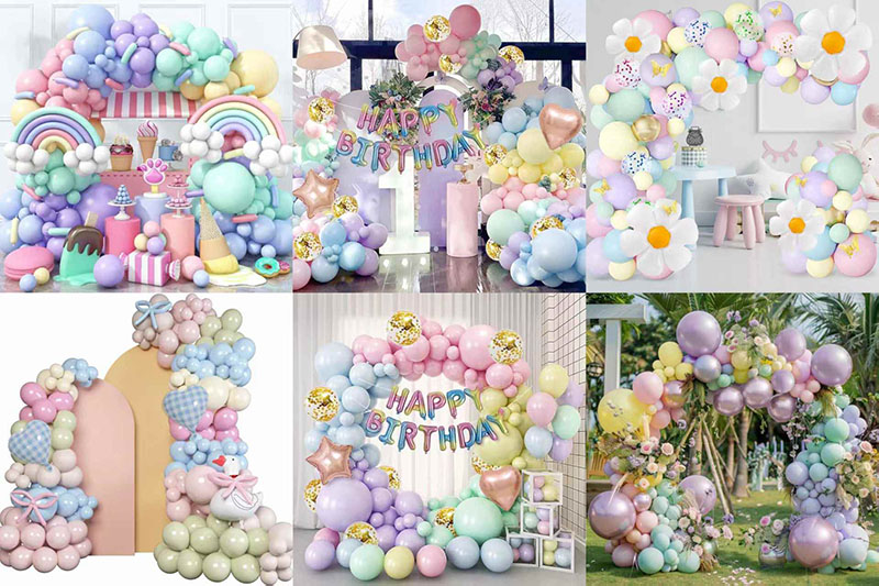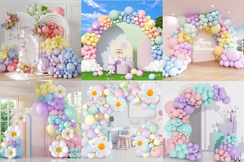 1. Stile: è possibile fare molte scelte di mix per soddisfare le diverse esigenze. Includono set di colori singoli, set di colori a gradiente e set a tema. Un mix di palloncini e palloncini in lattice può rendere l'aspetto più stratificato e più accattivante.
