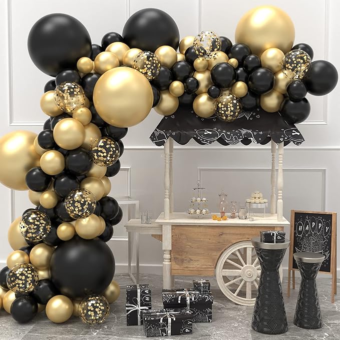 Questo set di palloncini metallici per compleanno include palloncini color oro metallizzato da 10 pollici, 12 pollici, 18 pollici e 36 pollici e palloncini neri metallizzati, nonché un palloncino dorato a forma di stella da 22 pollici e il palloncino foil di buon compleanno. È facile da installare per i principianti e può essere gonfiato con aria o elio. Inoltre, il cliente può personalizzarlo in base al colore che preferisce e adattarlo alla combinazione più adatta per i tuoi palloncini.