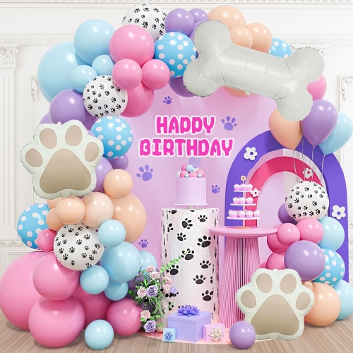 Possiamo stampare testi, motivi o il tuo logo sui palloncini, nonché elementi relativi al tema del set di palloncini. Ad esempio, sul kit arco per palloncini, puoi stampare i pois e la zampa sui palloncini.