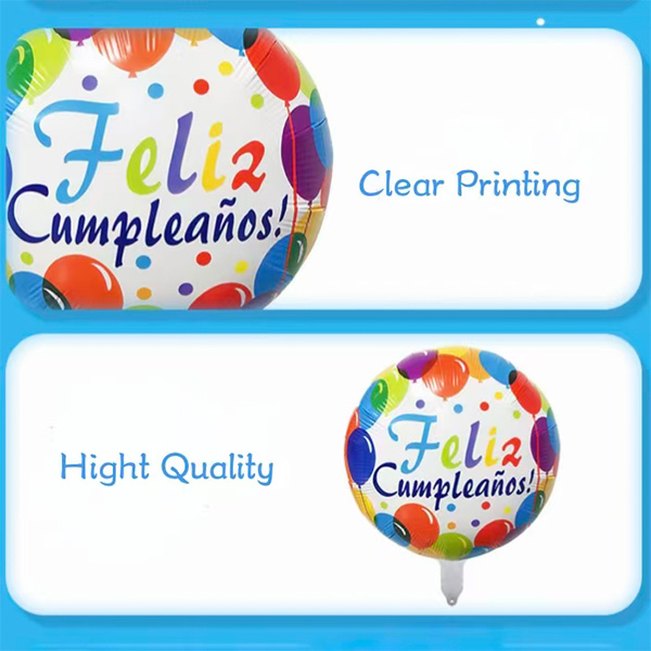 Includono palloncini di compleanno in molti stili. Alcuni hanno "Happy Birthday" o "Feliz Cumpleaños", con elementi come fiori, torte e candele. Altri sono per compleanni specifici, come la "prima ragazza di compleanno". Sono bravi per le occasioni della festa di compleanno. Creano un umore felice e caldo per le celebrazioni di compleanno.