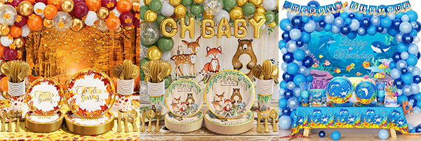 Le decorazioni per feste Niun® e altri stili possono essere combinati con stoviglie partyr per creare una varietà di stili.