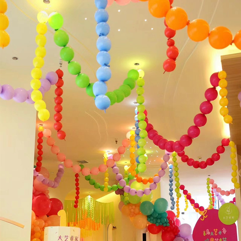 1. Design decorativo: il design della coda consente ai palloncini di essere collegati insieme per creare forme complesse come pareti di palloncini, catene di palloncini, cuori 3D, mongolfiere e draghi palloncini.