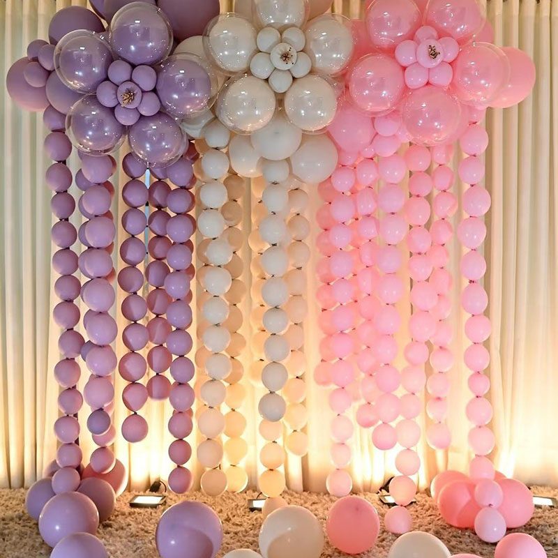 Caratteristiche:Il design della coda facilita il collegamento di palloncini, rendendo la creazione rapida e semplice. Inoltre, i palloncini in lattice sono altamente elastici e flessibili, consentendo loro di rimanere a galla per lunghi periodi.