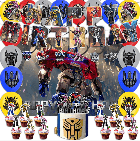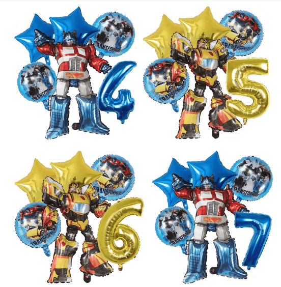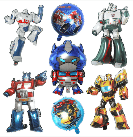 Combinazione classica: palloncino in foil Transformers con bandiera a tema palloncino in lattice colorato, palloncino in lattice come base, palloncino in foil come nucleo visivo, bandiera come decorazione a tema, adatto per feste di compleanno, celebrazioni di festival del layout di base.