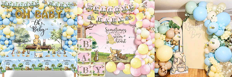 Lo stile si concentra sulla classica IP di Winnie the Pooh. Mescola immagini di tanti amici carini. Questi amici includono Tigro e Maialino. Si abbina ai palloncini nei freschi colori macaron. I colori sono tenui blu, rosa, giallo, verde e così via. Va bene per le feste dei maschietti. Va bene anche per le feste delle bambine. Puoi trovare uno stile di colore adatto. Ad esempio, la serie blu mostra la solare vitalità dei ragazzi. La serie rosa è piena della dolcezza e della tenerezza delle ragazze.